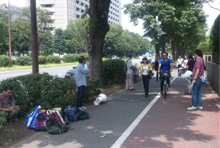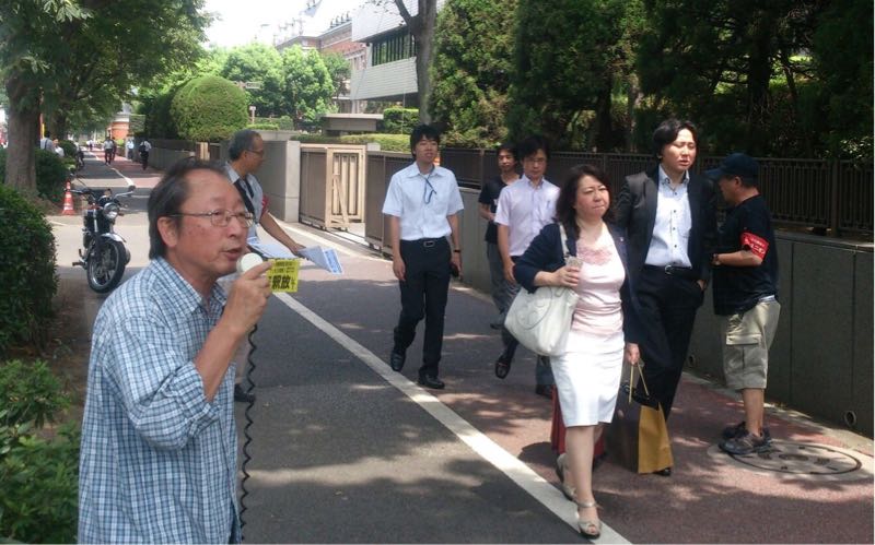 朝から裁判所前で救援会と全学連がビラまき・救援署名集めの情宣をやっています。