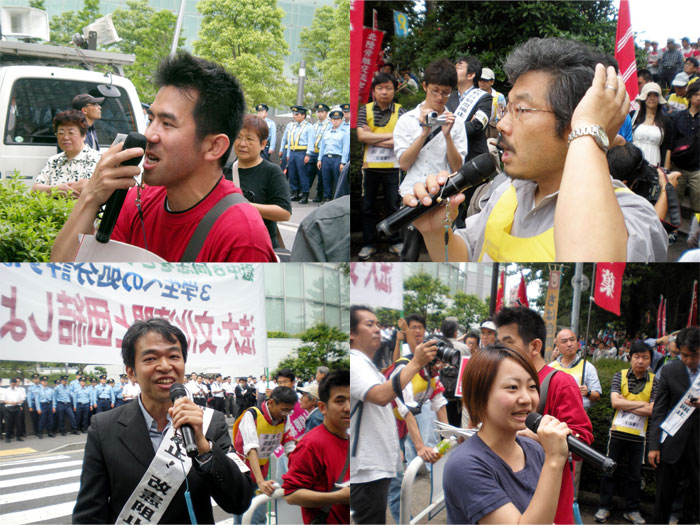 左上より久木野君、その右が動労千葉の川崎さん、左下が森川弁護士に、最後が洞口さん!