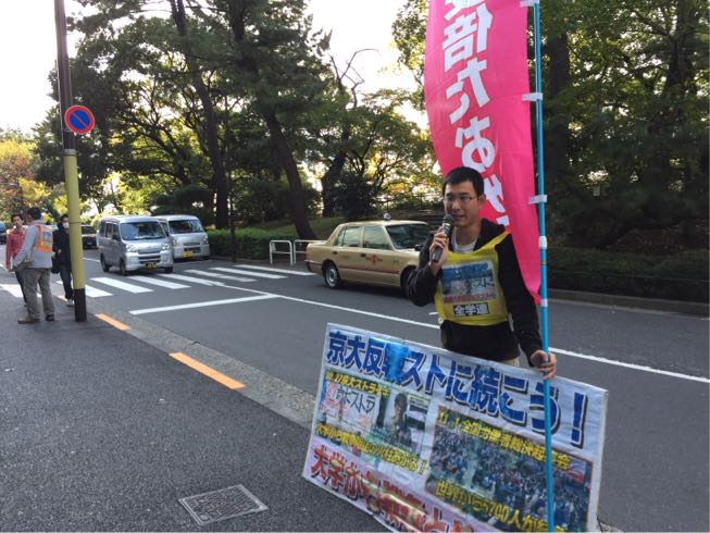 本日の法大門前での斎藤全学連委員長アピール