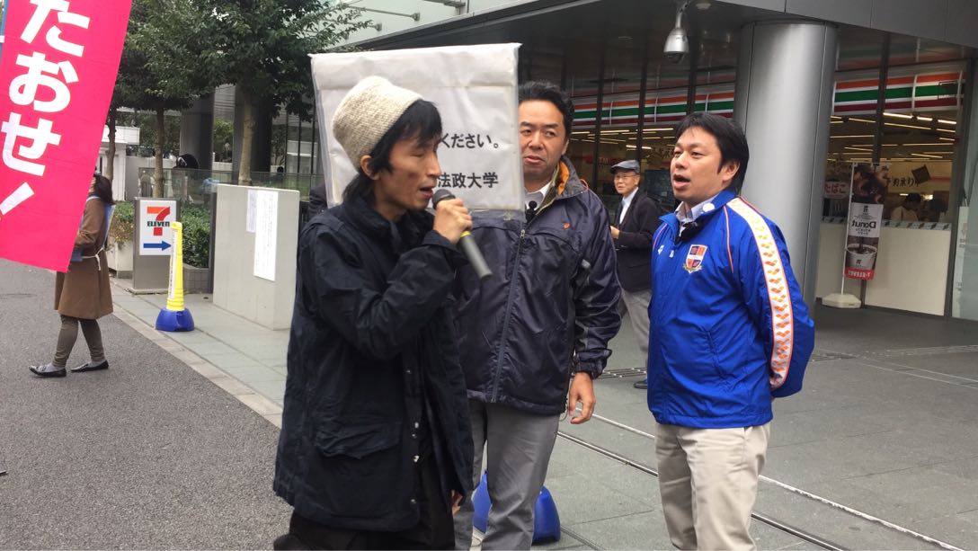 本日の法大門前での武田君アピール