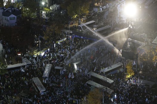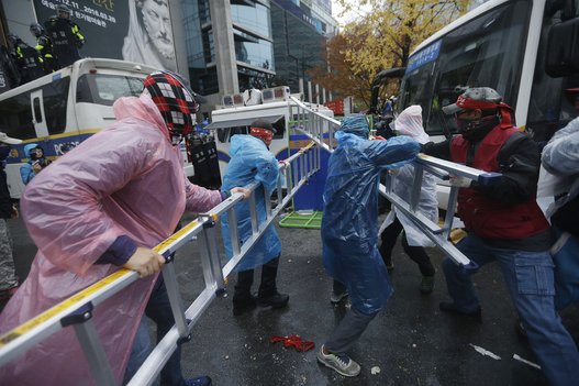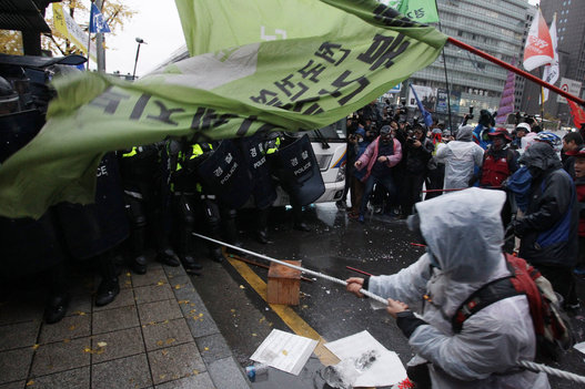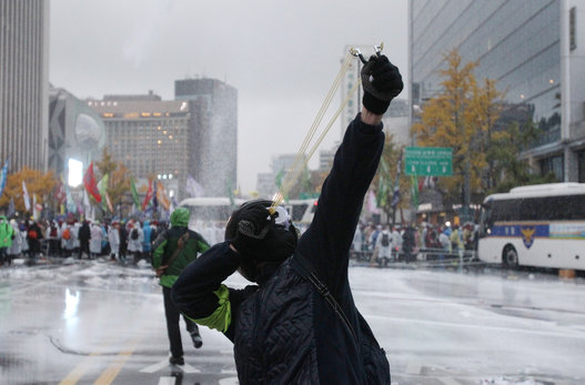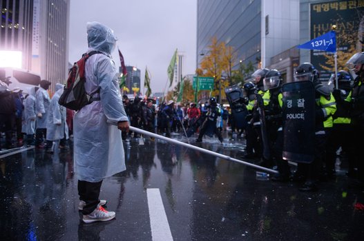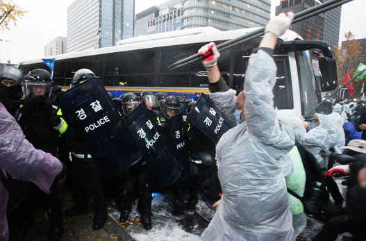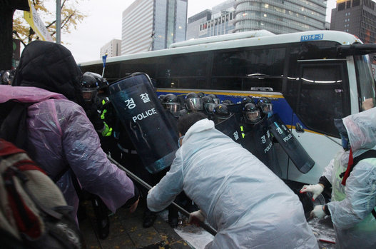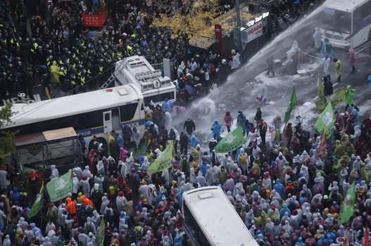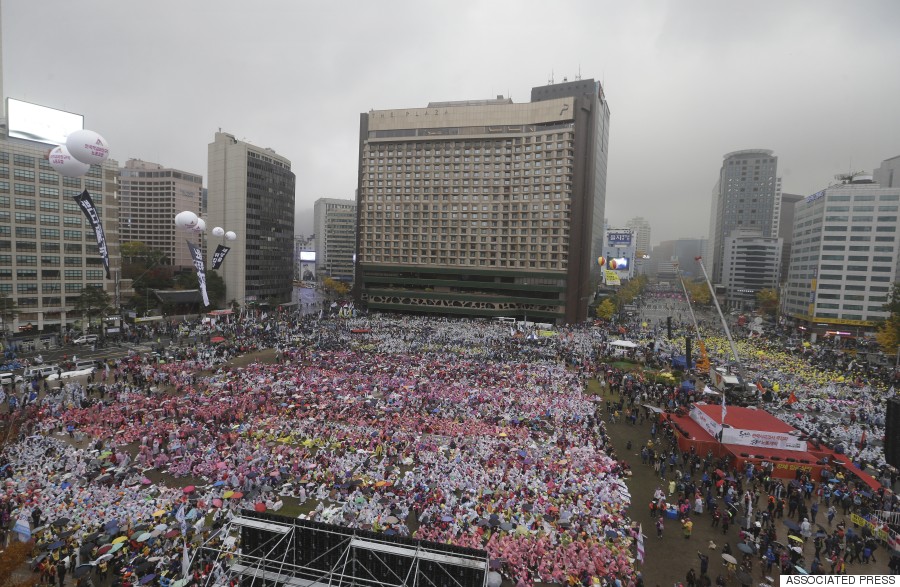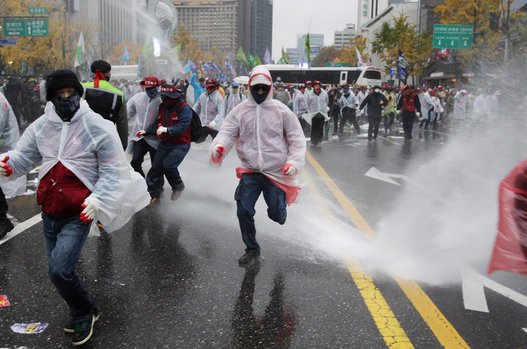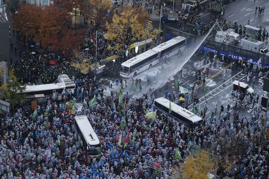 韓国・ソウル中心部の光化門付近で11月14日、朴槿恵大統領を批判する大規模なデモ「民衆総決起大会」が開かれ、主催者の発表で10万人以上(警察の推定は約6万4000人)が参加した。