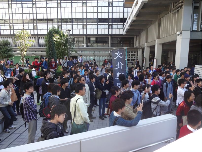 ↑学祭規制に抗議しキャンパス中央で1000人が決起!(12年10月19日)