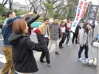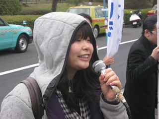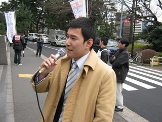 8カ月ぶりに帰ってきました。すごく気分がいい! 労働者・学生は闘い抜いてこそ、人間らしさ、誇りを取り戻すことができる。学生が未来を取り戻した時に歴史は前進すると思う。大学が営業、金儲けの場になる、一方で学費を払えない学生が叩き出されている。学費でマネーゲームやって理事会が儲けている。学生は団結した時に大学を取り戻し、未来を取り戻し、歴史が前進する。一人の仲間の処分を阻止するために全員が団結することだ。今、歴史を見れば大恐慌で戦争が始まっている。戦争を止める力も、労働者・学生の団結にある。法政大学を学生の手に取り戻そう、この社会を変えよう!