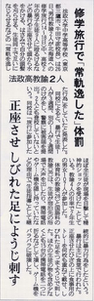 法政大学高等学校教諭による生徒に対する暴力行為について