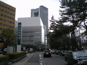 ▲逓信病院の真横です。正面のグレーの建物が外濠校舎