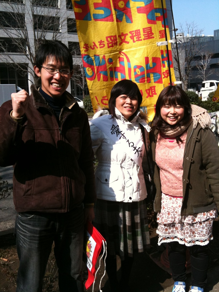 1971年に沖縄協定批准阻止闘争で無実の罪をでっち上げられ、無期懲役で35年も獄にとらわれている星野文昭さんを取り戻す会と合流してビラまき・情宣をやりました。