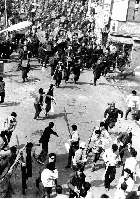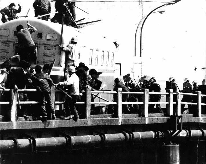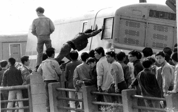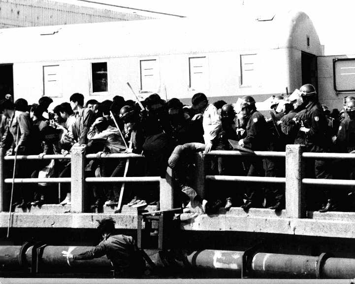 学生が集まったことに焦った法大当局は、何と正門を封鎖する暴挙に手を染めました。