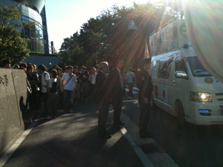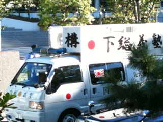昨日、法大門前に右翼が街宣車2台で来ました。