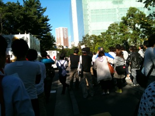 右翼が言っていること。それは一般的に領土問題のことではなく、「国を守る為に戦争をやれ」ということであり、さらに言えば法大生に対して「お前らは戦地に行け」という学生をなめきった主張そのものです。法大生はこのようなふざけた戦争翼賛煽動に対して、徹底的に怒りの声をあげよう!!