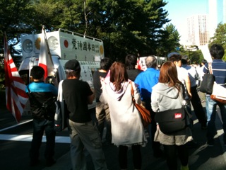 菅・民主党が「日本版海兵隊の創出」「武器輸出三原則の見直し」などと言っていることと全く無関係に授業が行われていること自体が異常であり、ましてや右翼が門前で街宣をやっていることを容認するなど言語道断です。