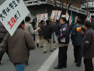 弁護士からは、07年4月の入学式などで、法大当局が「法大生の会」や社会科学研究会などのサークルを名指しにして、「セクトの活動家が入り込んでいる」などという妨害文章を配布したことを弾劾した。