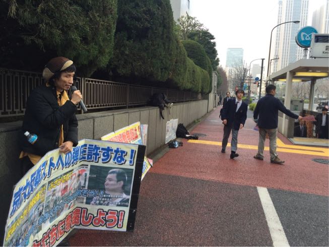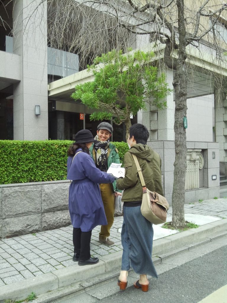 昼の地裁展開では地裁を包囲する全面展開!1時間で200枚を越えるビラが受け取られ、20筆もの署名が集まりました!はじめは「ストは迷惑」と言っていた人も、時代情勢をめぐってストの意義について話し込むなかで、中学の時に勤評闘争で学長室に突っ込んだことを思い出したとカンパしてくれました。