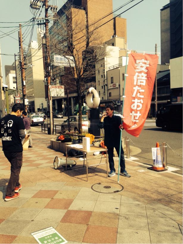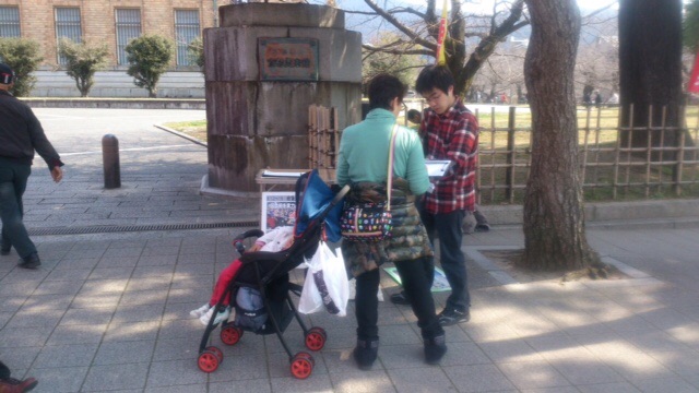 今日は11時から13時まで三条河原で街頭宣伝。