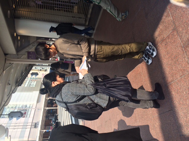 今日の午前中は、京都の街に繰り出し、三条河原町、四条河原町、京都市美術館前で展開しました。署名を 44 筆集め、ビラを 300 枚配布し、京都の労働者人民の怒りと結びつくことが出来ました。