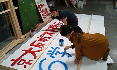 街頭宣伝中止に伴い立て看板制作の手伝いに回る。