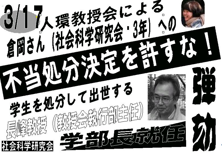 3月17日の人環教授会で倉岡さん(3年)の処分が決せられようとしている!