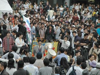 新入生のみなさん! 入学おめでとうございます! 法政大学によって、不当処分撤回を掲げて闘う学生です。私たちの闘いの原点は、06年に起きた3・14弾圧です。4年前の3月14日、法大当局は「ビラまき・立て看板規制」の一方的な通告を根拠に、学生活動への全面規制を開始。それに反対した学生29人を、招き入れた200人の公安警察に逮捕させるという暴挙をはたらきました。それを理由に5人の学生が停学・退学処分をうけます。以来法大当局は、国家権力と癒着を強め、積極的に学生を警察に売り渡しては無期停学や退学の処分を下し、闘う学生をキャンパスから追放してきました。この4年あまりで逮捕者・起訴者はそれぞれのべ118人、33人に、そして被処分者は11人にものぼります。この激しい弾圧に対し、法大生はもちろん、全国の学生・労働者とともに大集会を叩きつけてきました!