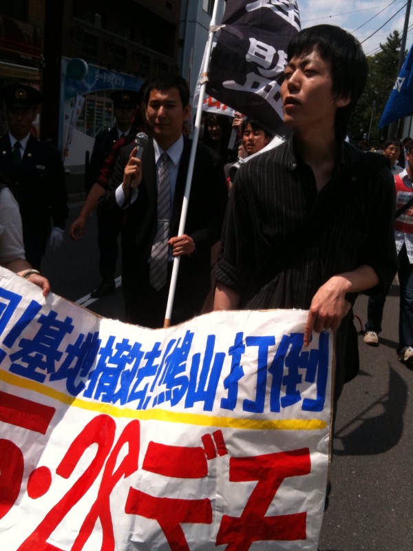 私たちは今こそ、政治スローガンを掲げて闘うことこそが求められていると思います。その意味でも本日の「処分撤回!基地撤去!鳩山打倒!」を訴えるデモは決定的であったと思います。