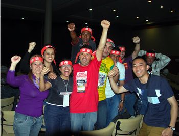 また「団結はちまき」は大人気で瞬く間になくなり、予備にもってきた「30周年記念バッチ」もすぐになくなってしまった。