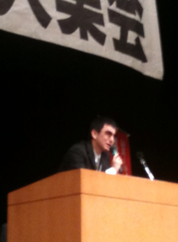 文連委員長・斎藤郁真君、副委員長・恩田亮君のグラサンを装備して発言!! 「労学連帯で闘おう!!」