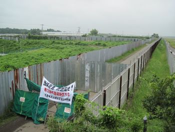 フェンスで封鎖された団結街道(市東孝雄さん宅から数メートルの場所)