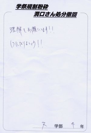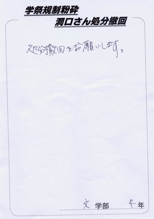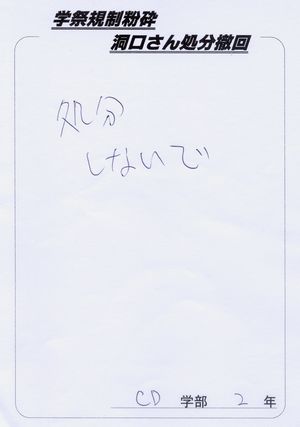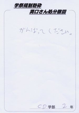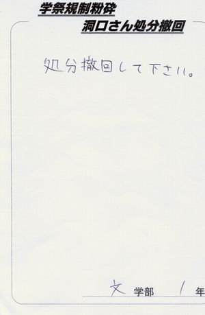 洞口さんの処分を撤回してあげてください×2(←この×2は友達のぶんもという意味だそうです!)