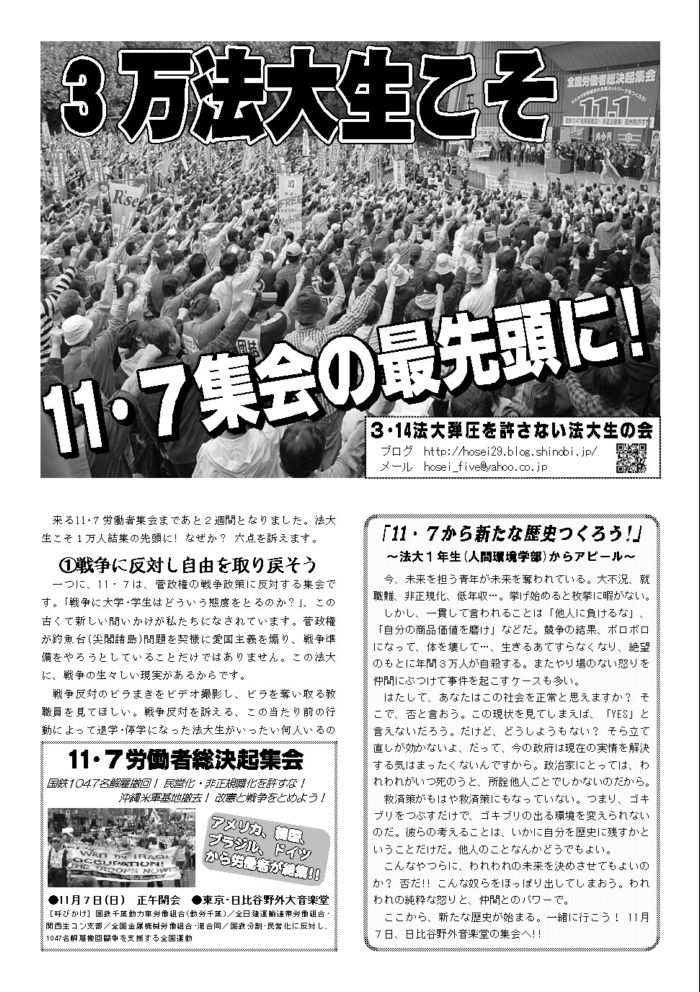 法大生は11・7労働者集会に集まろう!