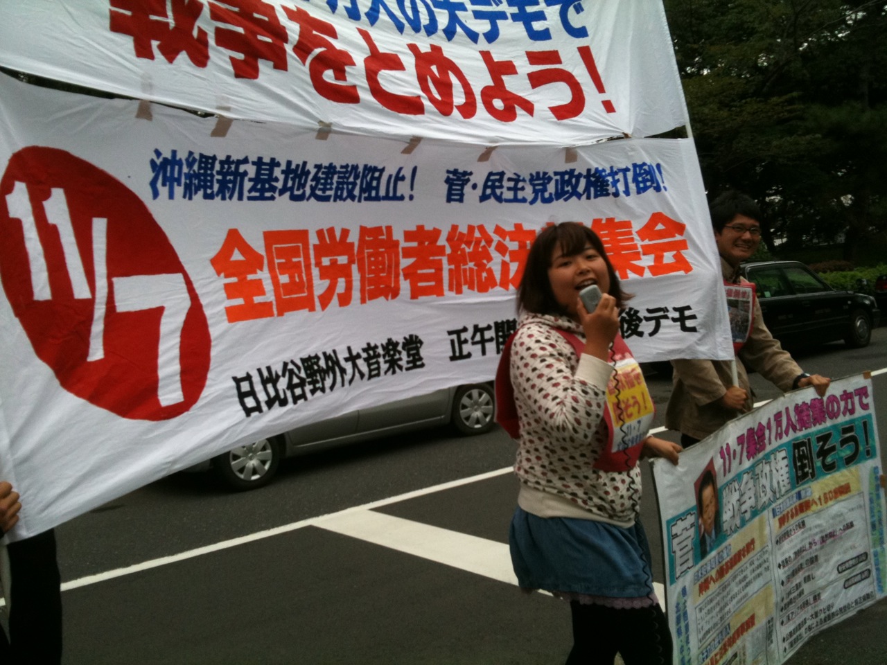横断幕を掲げて今週末のデモと11/7の労働者集会への決起を訴え、法大生との圧倒的な結合を生み出しました!!