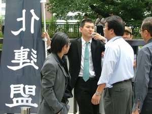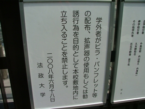 大学当局は、警察と一体となり、昼休みに教職員を動員し、弾圧体制をとっていた。これは完全に、6・20第3波法大包囲デモ、6・29渋谷大デモに対する恐怖のあらわれだ。今日の逮捕はサミット前になんとか逮捕しておきたいというあがきにすぎない!校門には新たな掲示板が設置された! ますます非和解だ! 残りの36人を取り戻すぞ!