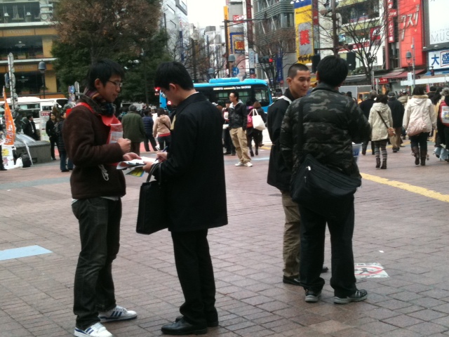 全学連・文連が「渋谷をタハリール広場にしよう!」と訴えました。