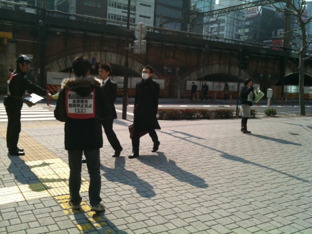 それに先駆けて東電本社まえでビラまき街宣やってます。