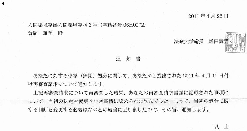 そもそも教授会が決めたわけでもない処分の、何を再審査したというのか!