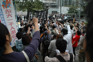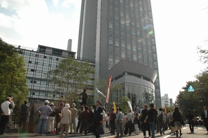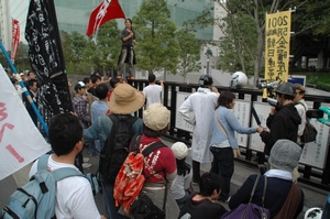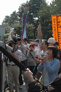 正門前に舞台を移して、デモ前の集会。
