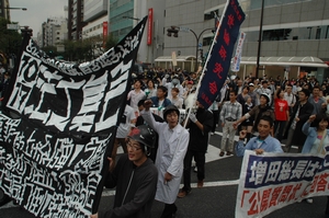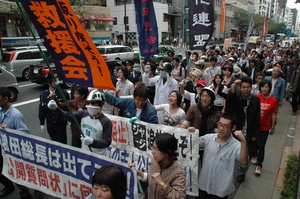 デモに出発! 「増田出てこ~い!」総長室をめざすデモ隊