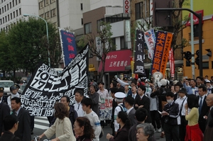 デモは外掘通りをぬけ、飯田橋(神楽坂下)へ