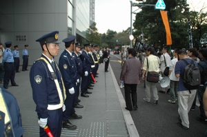 デモで法大キャンパスに帰ってくると、まだ外濠校舎は閉まっていた!しかも機動隊に包囲されている!