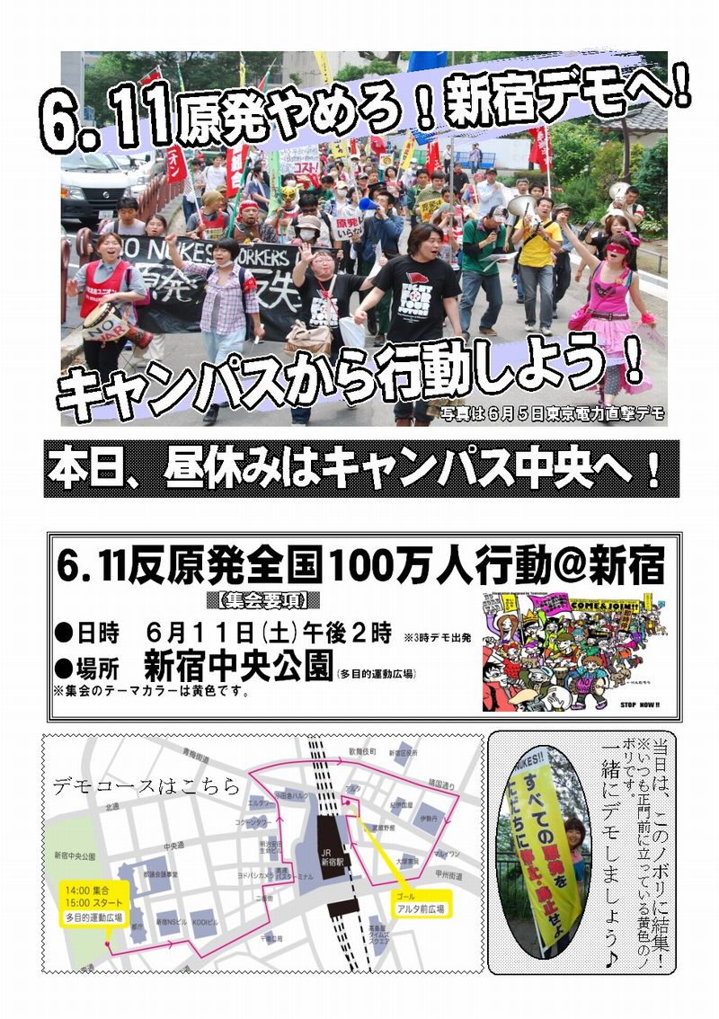6月11日は、全国40カ所で100万人反原発大行動が呼びかけられている。もう黙っていられない!わたしたちの行動こそが原発を止める力だ!100万人デモで「原発やめろ」の声を菅政権に思い知らせてやろう!