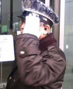 アメリカのブッシュが退任して、気弱!?になったのか、必死で顔を隠してます。
