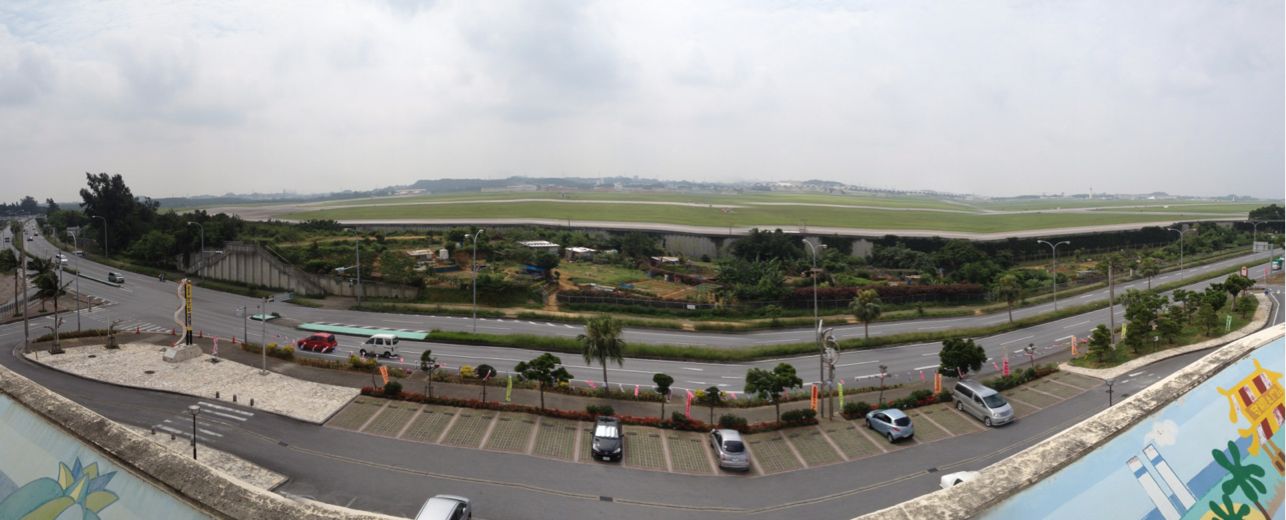 東アジア最大の軍事基地=嘉手納基地が見えます。嘉手納町の83%をしめるとのこと。