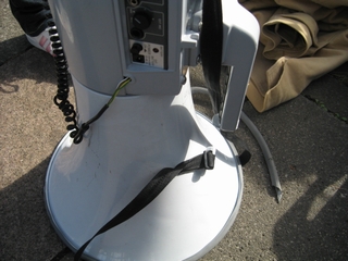 14日ついに法大当局は、トラメガの破壊に手を染めた。一人を数人で取り囲み、マイクのコードを引きちぎって引き上げていったのだ。絶対に許すな!(写真は破壊されて音のでなくなったトラメガ)