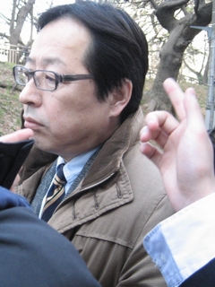 直後、飯田橋からのこのこと歩いてきた浜村法学部教授を追及。学館解体時の学生部長であり、増田総長体制を支える常務理事。連日の情宣妨害の指揮をしているのもこの男だ。何度でも怒りをたたきつけるぞ!