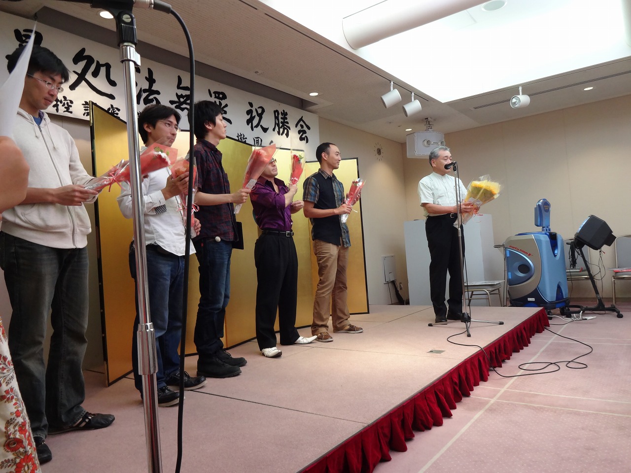 駆けつけて頂いた高山俊吉弁護士より無罪戦士に花束贈呈