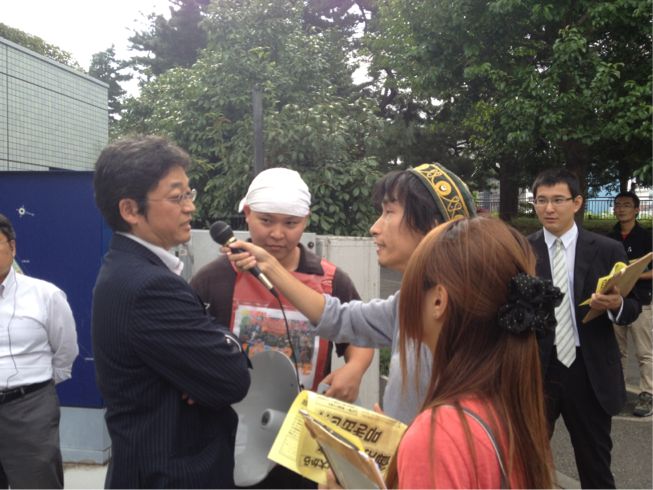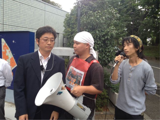 また会場前では、武田くんらが講演会に入れろと抗議!