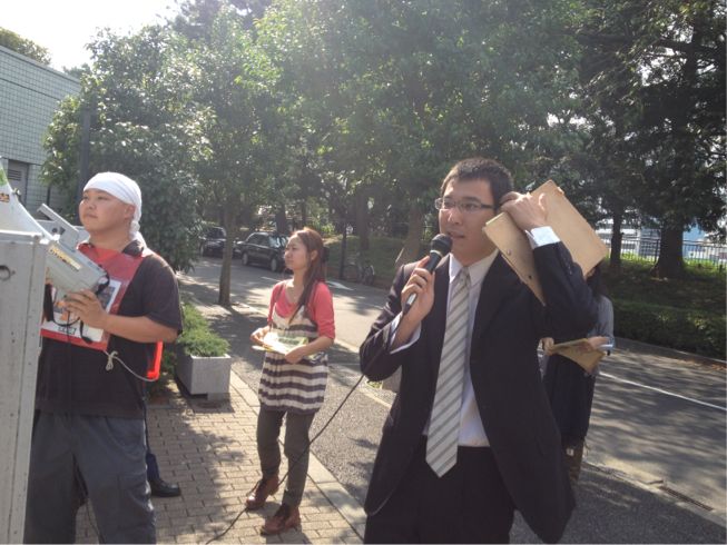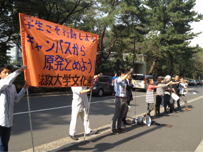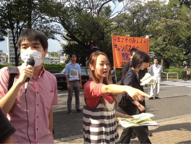 最後は御用学者講演会が行われる外濠校舎に向かってシュプレヒコールを叩きつけました!!