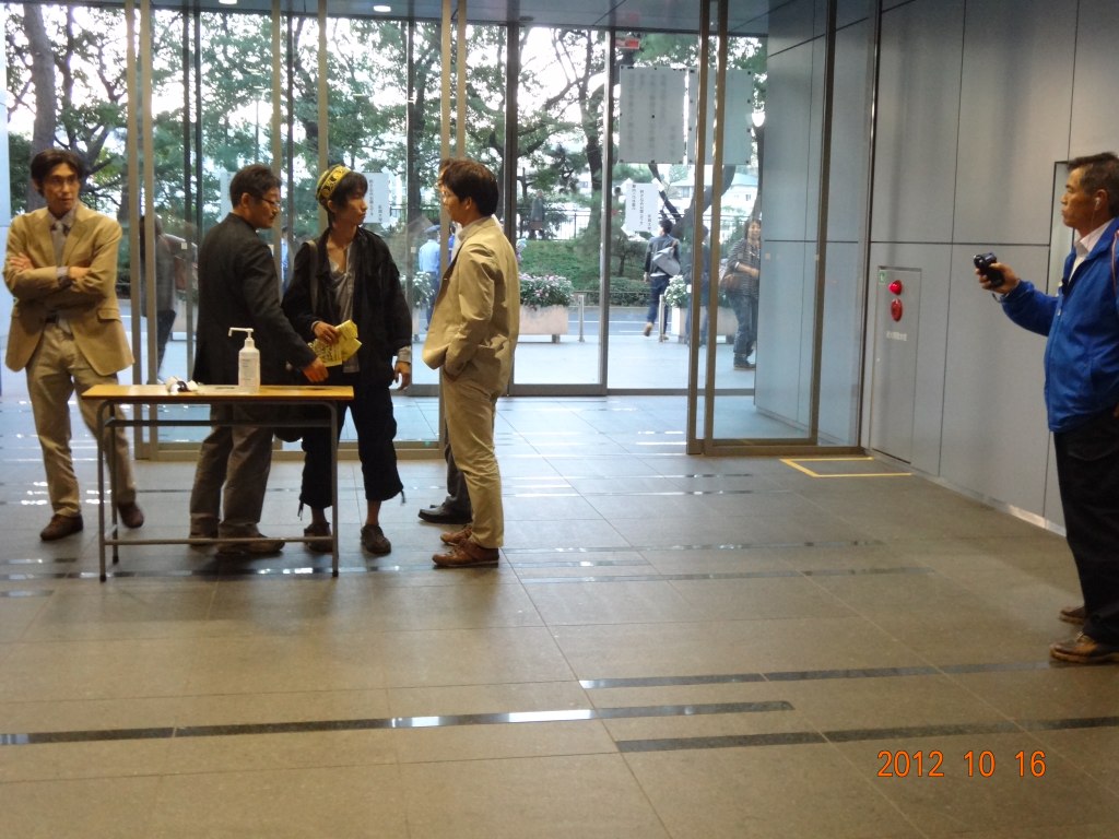 武田くん、本日は外濠校舎内でビラまきを行っていたところ