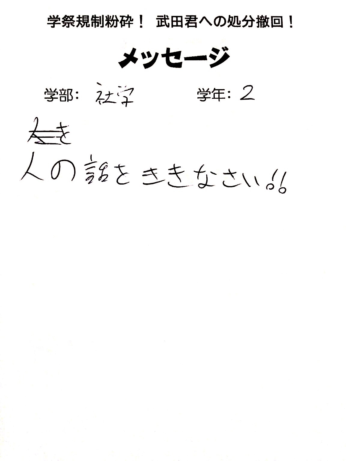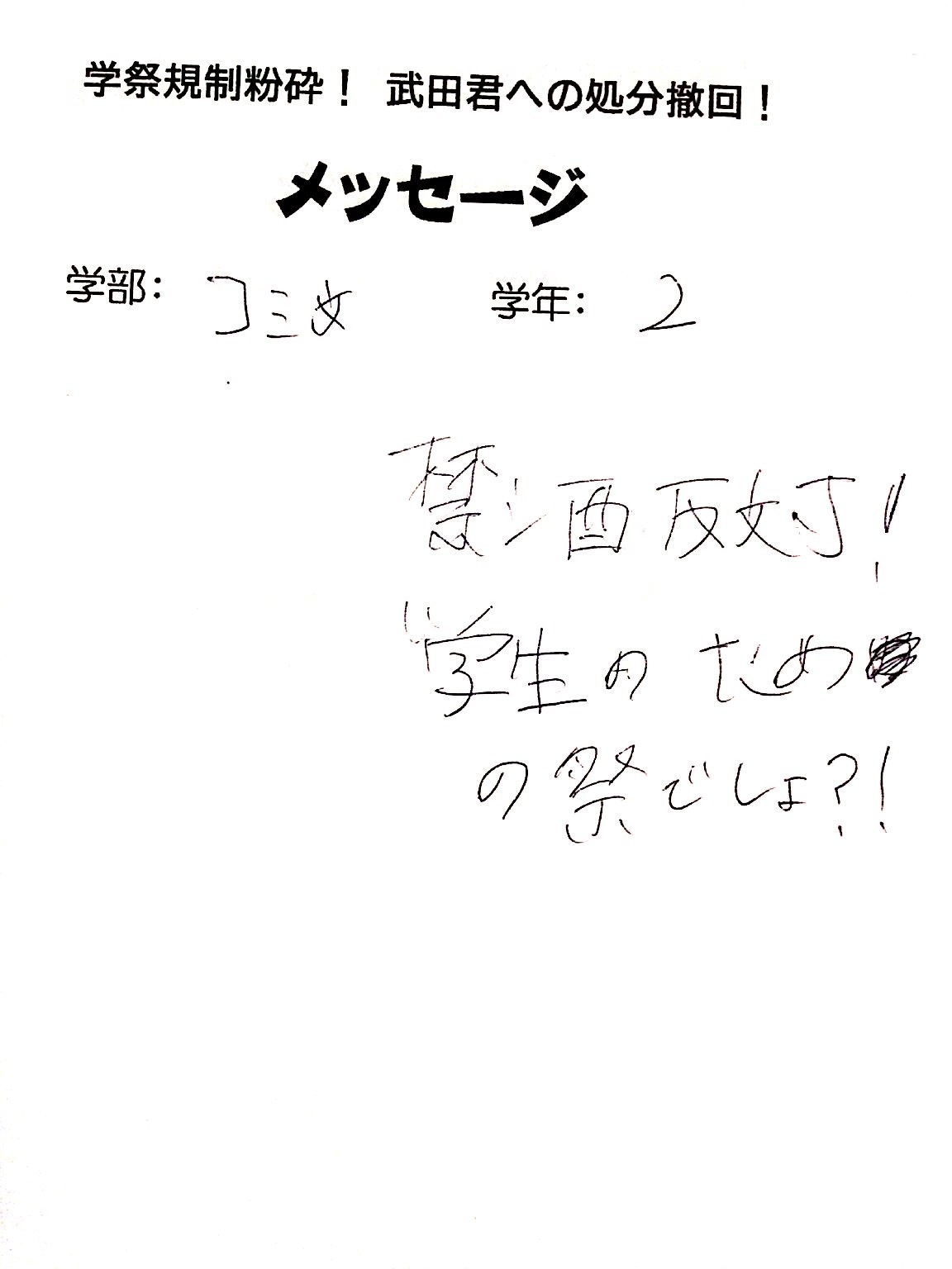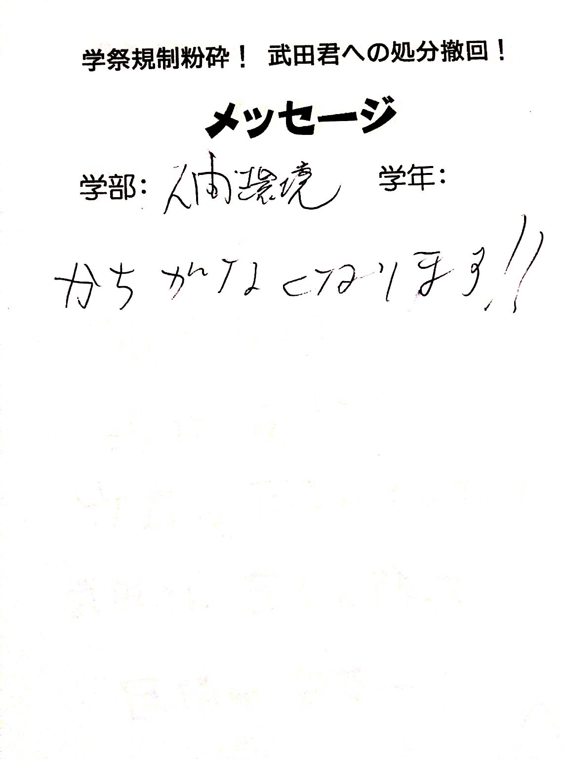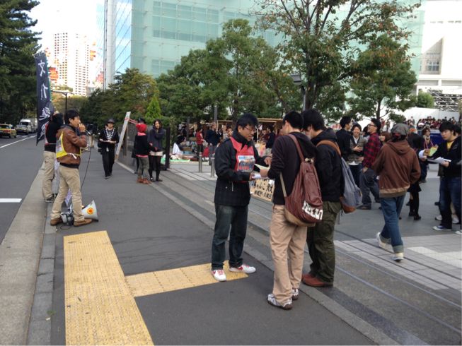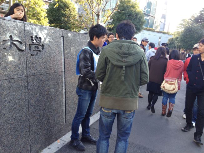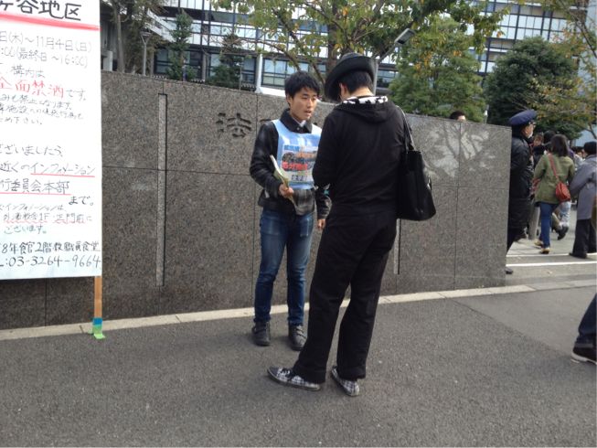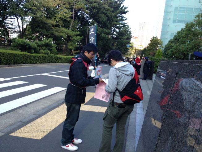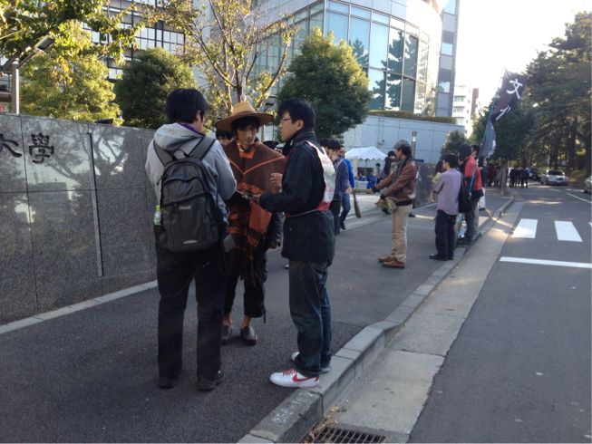 武田くんを先頭に不当処分撤回・学祭規制撤廃を訴え、法大生とガンガン結合を勝ち取っています!!