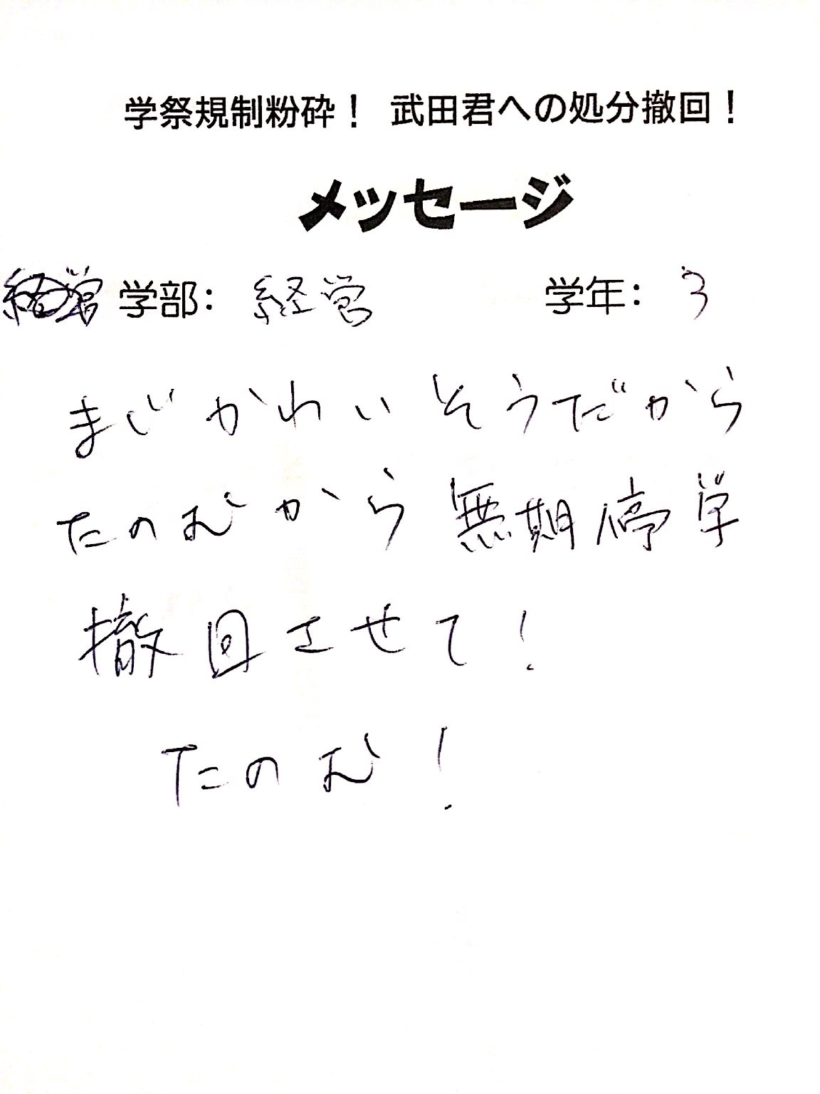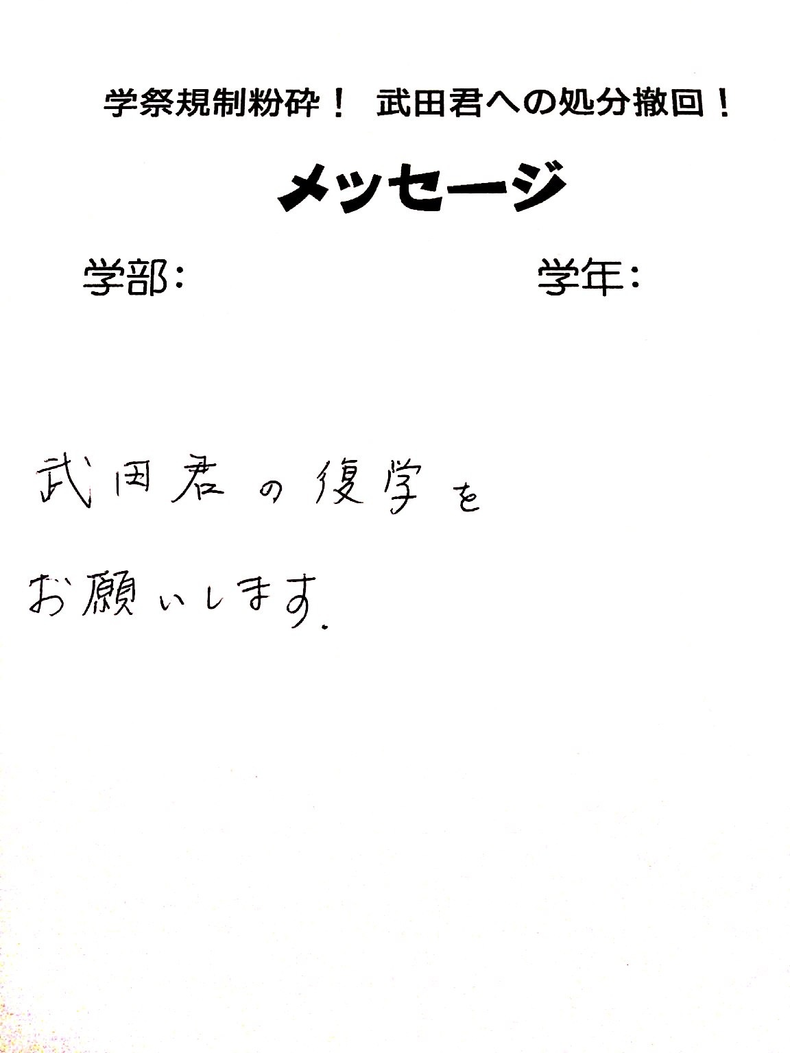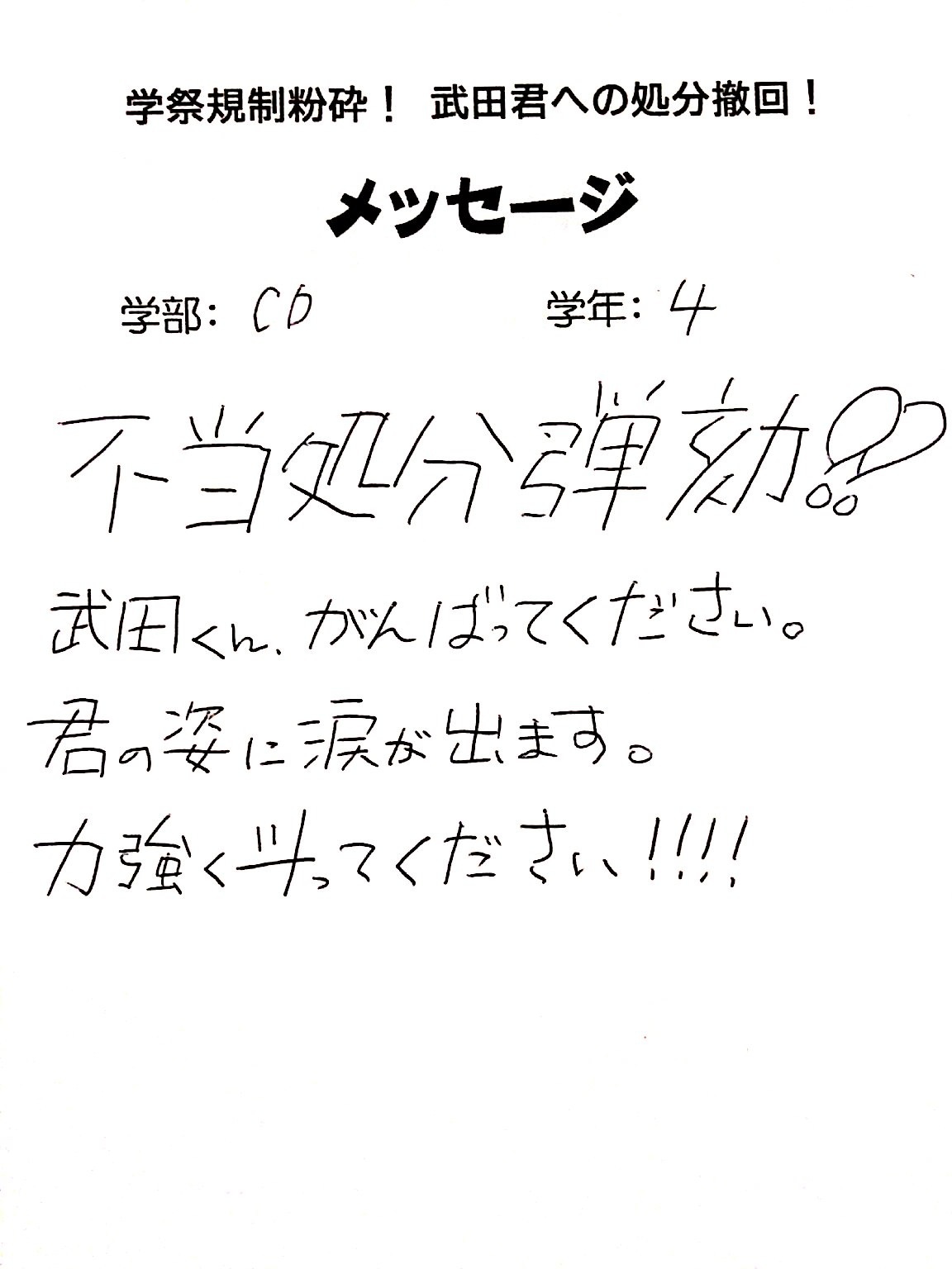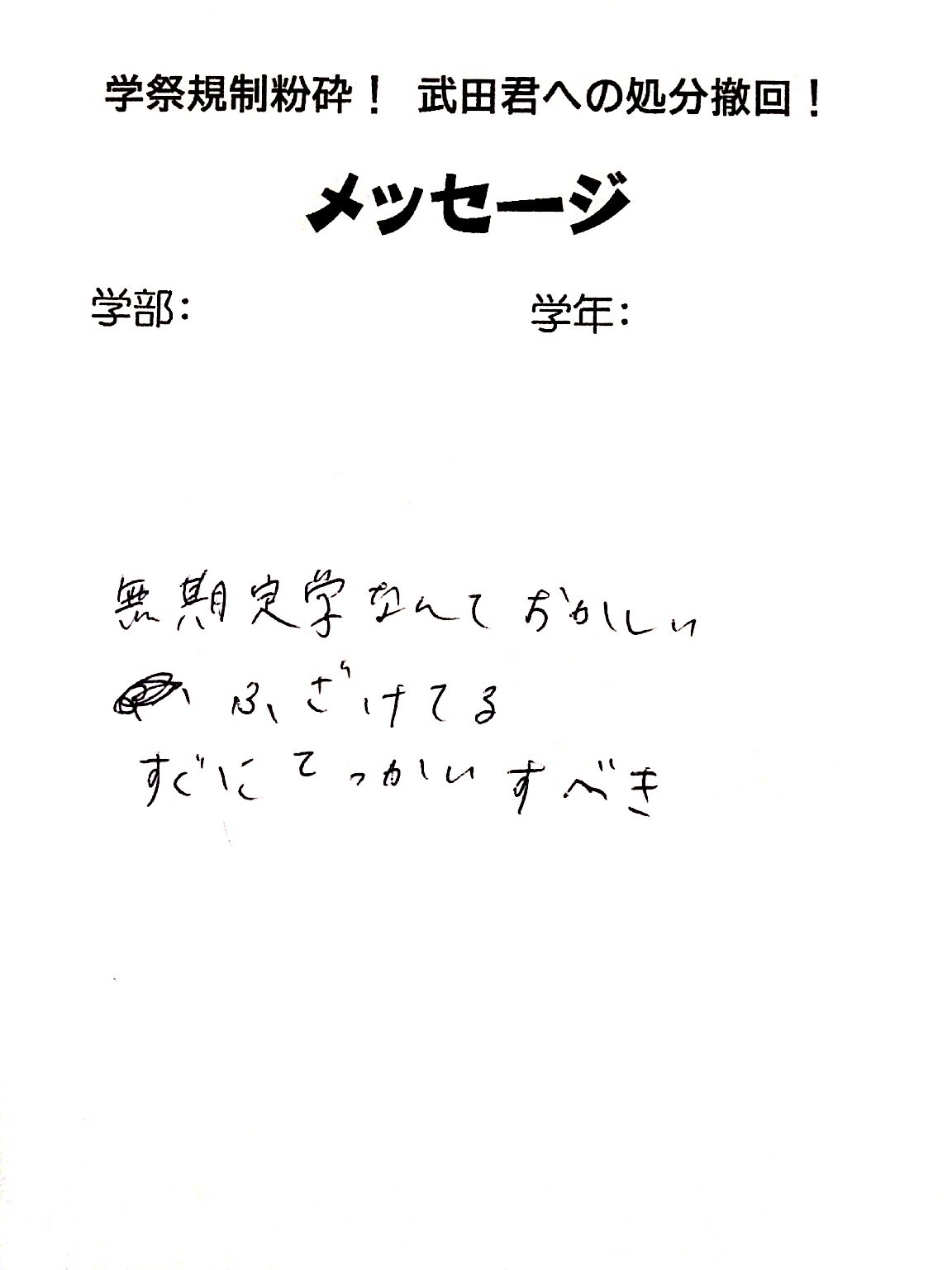 全国・全世界の労働者・学生と団結し、武田くんへの不当処分を撤回させよう!!