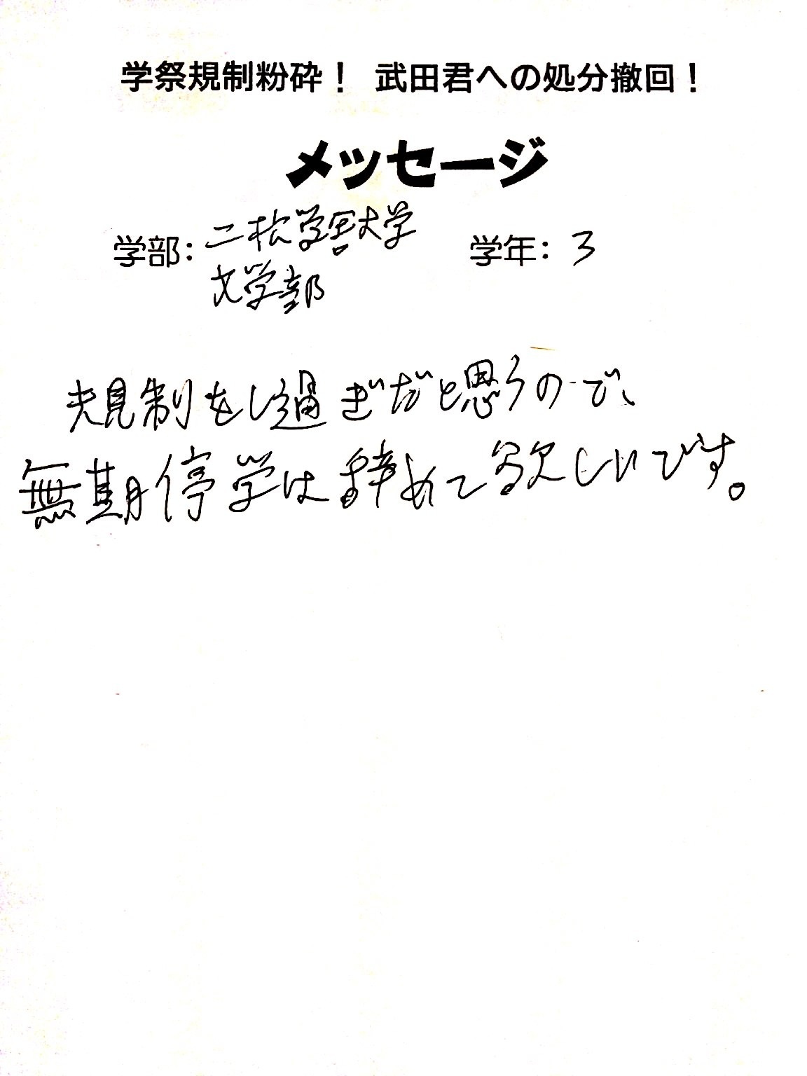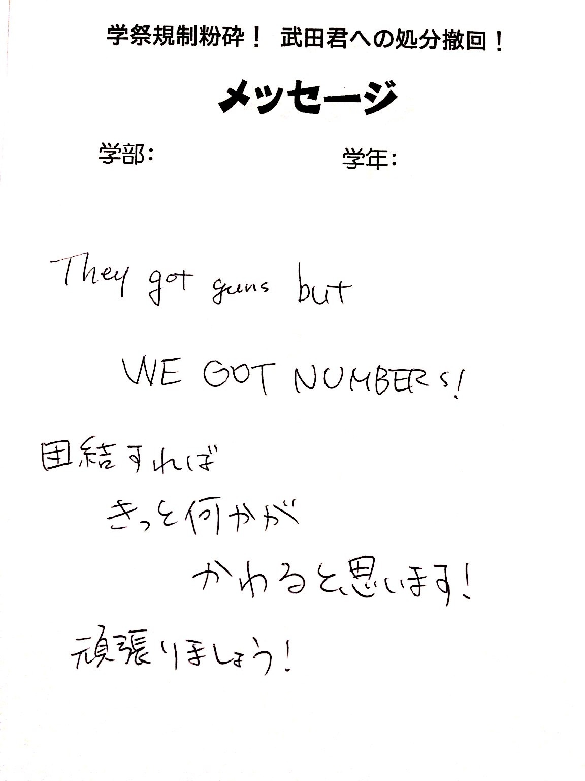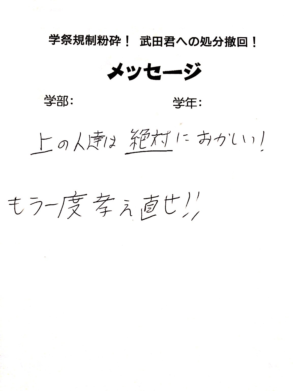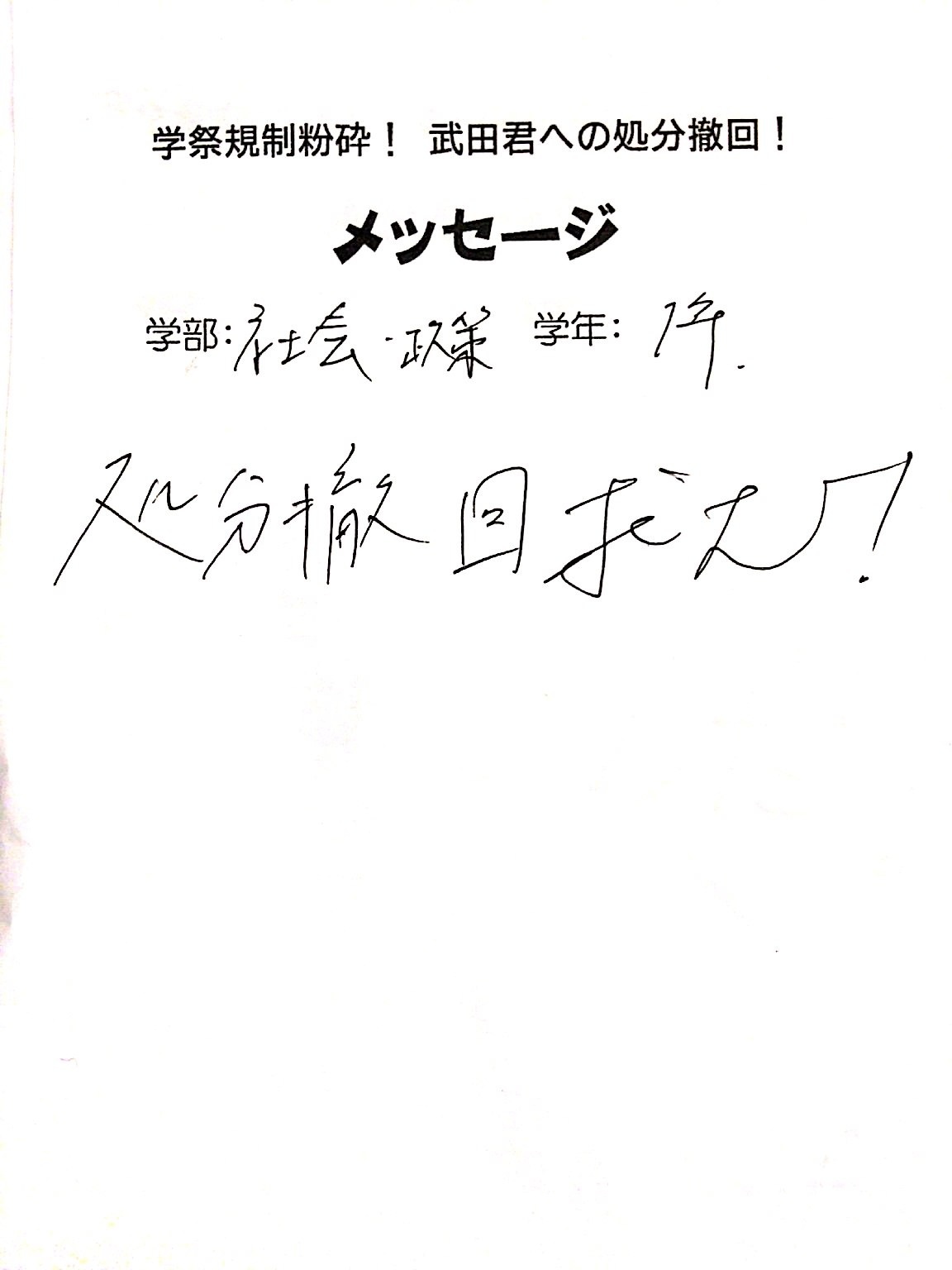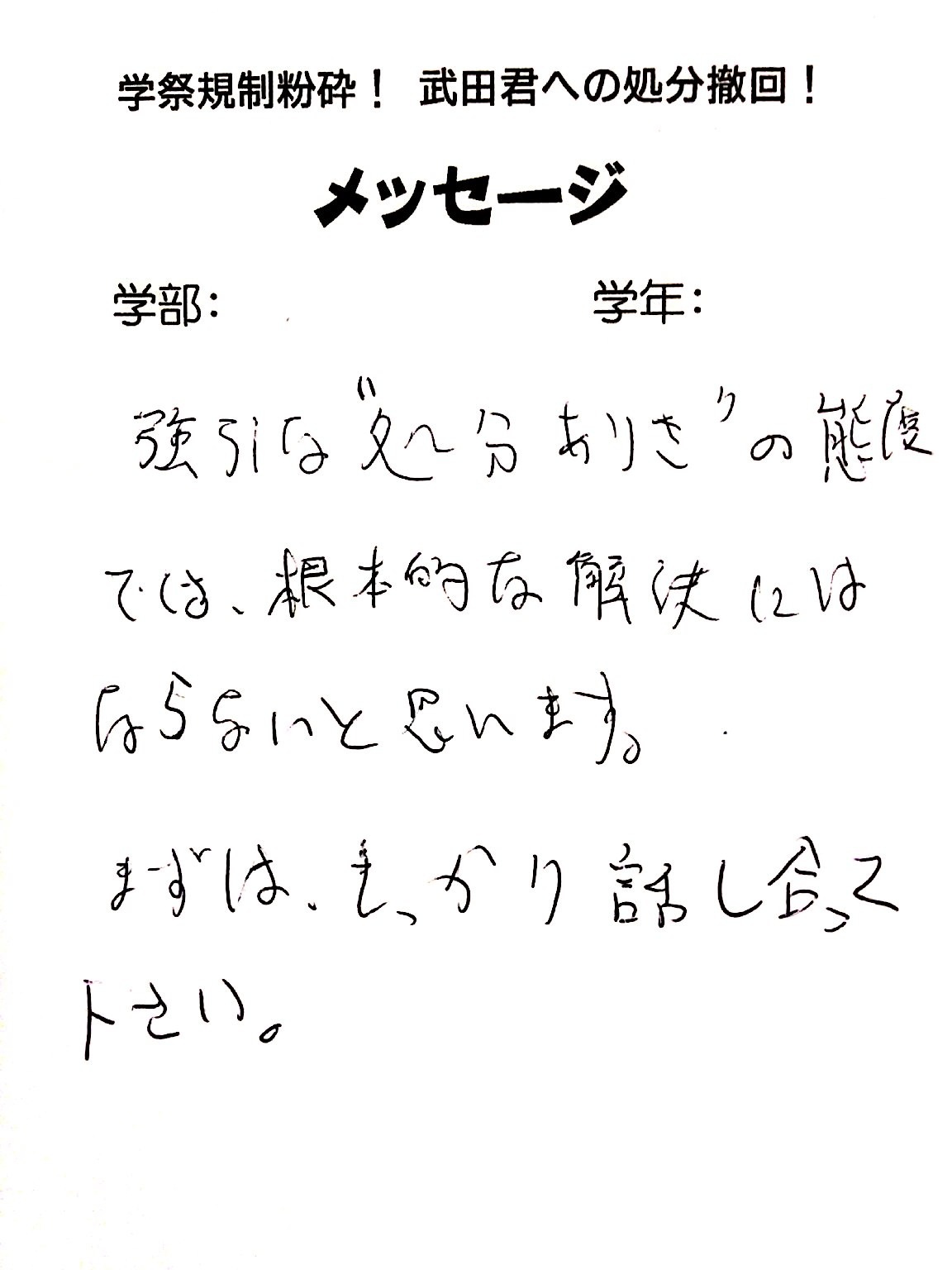 全国・全世界の労働者・学生と団結し、武田くんへの不当処分を撤回させよう!!