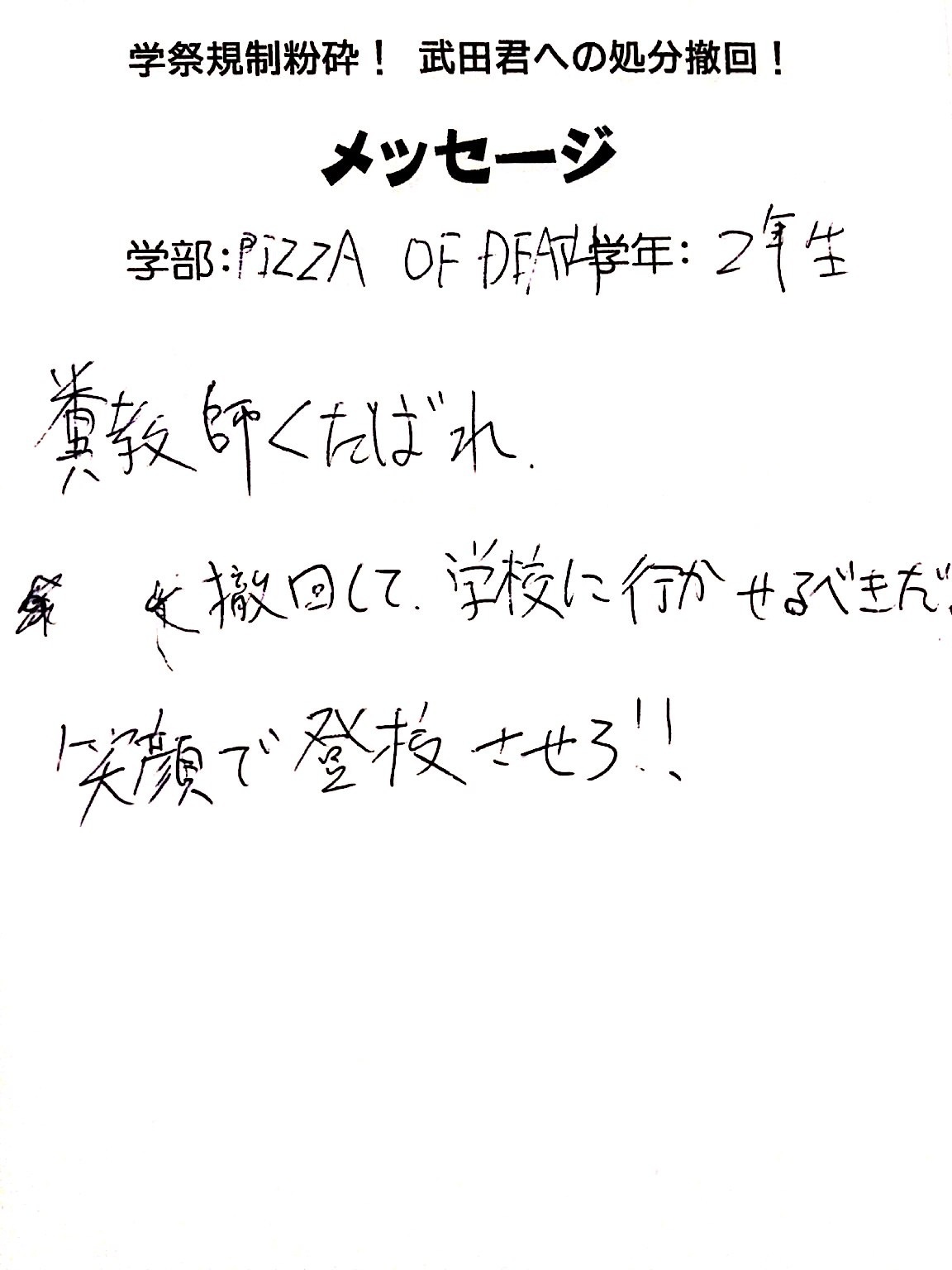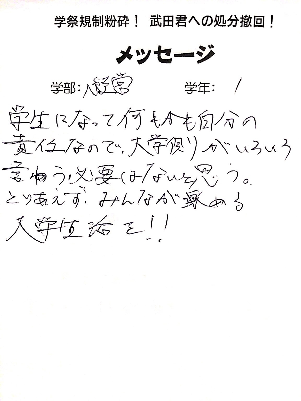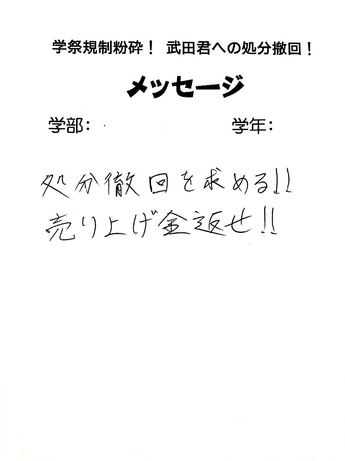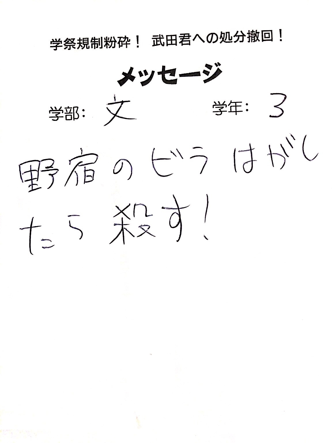 全国・全世界の労働者・学生と団結し、武田くんへの不当処分を撤回させよう!!
