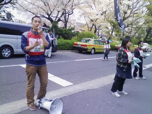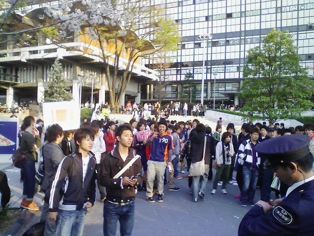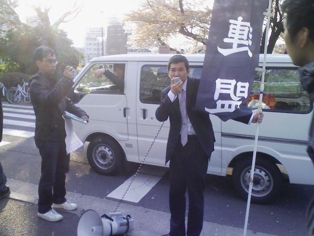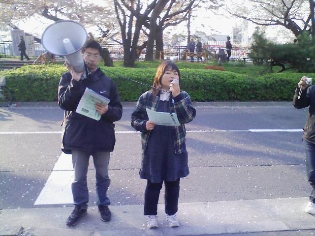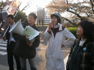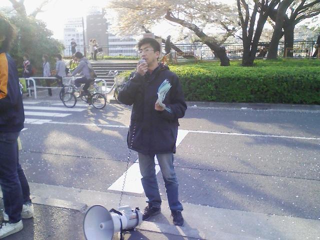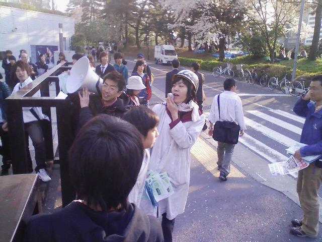 そして近くにいた新歓中のサークル員たちも周りを取り囲むようにして集まり、断固抗議集会をやりぬきました!!